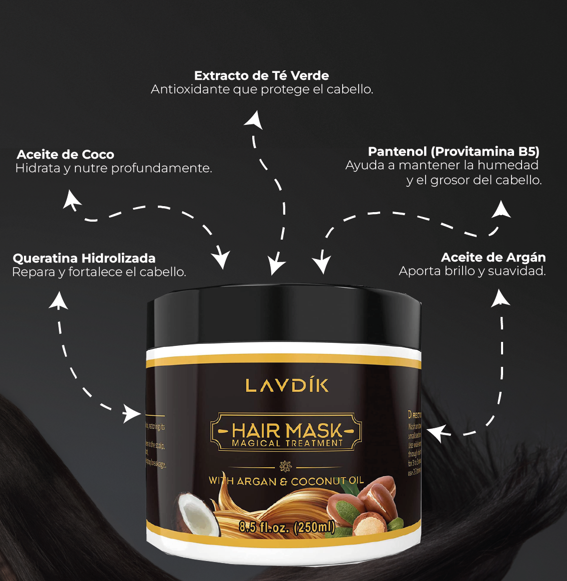 Finalmente, una solución que funciona Hair Mask es diferente. Gracias a su fórmula con queratina y aceites naturales como el argán y coco, repara profundamente, reduce el frizz y protege tu cabello desde la primera aplicación. ¡Atrévete a probar algo que realmente funciona!