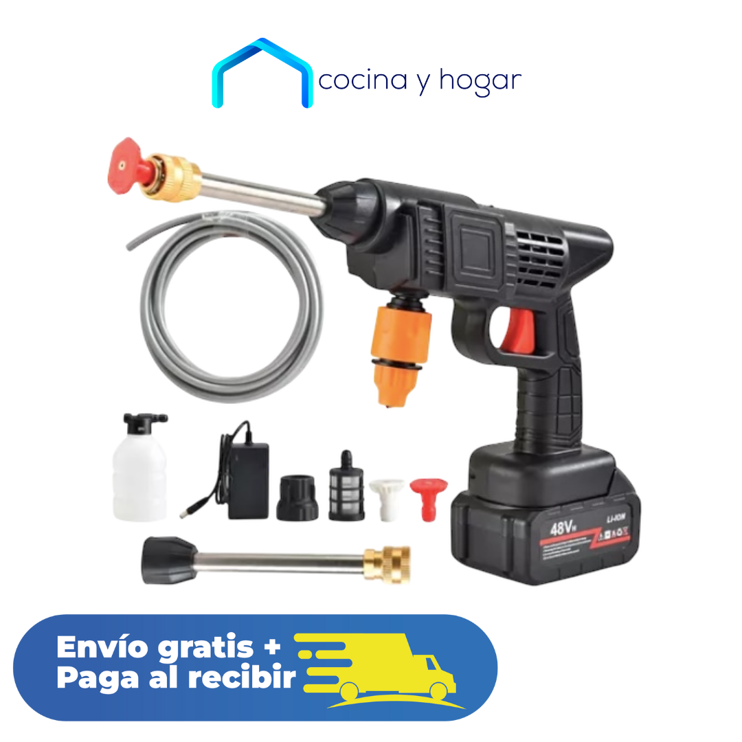 La Hidrolavadora Inalámbrica de 48V te ofrece total libertad para limpiar donde quieras, sin preocuparte por los cables. Además, su batería recargable te da la comodidad de limpiar por horas sin interrupciones. ¡Haz tu vida más fácil y eficiente!