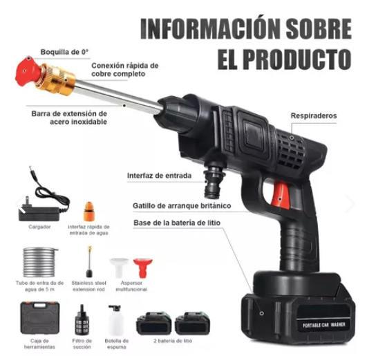 Con su potente presión, la Hidrolavadora Inalámbrica elimina suciedad, polvo y manchas de tu carro, fachada o muebles en segundos, sin esfuerzo. Lleva la limpieza al siguiente nivel con esta herramienta innovadora.