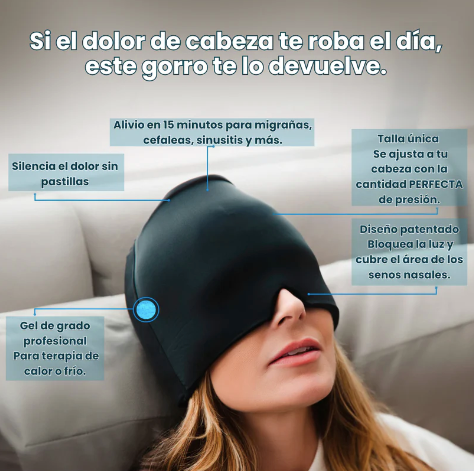 ✅ Terapia 360° en gel: Alivio total que cubre toda la cabeza y ojos sin puntos fríos.