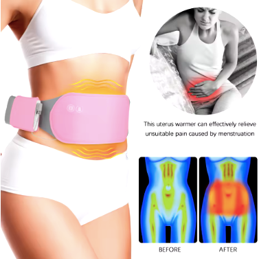 Masaje vibratorio infrarrojo: Combina calor y vibración para aliviar cólicos y tensiones abdominales.