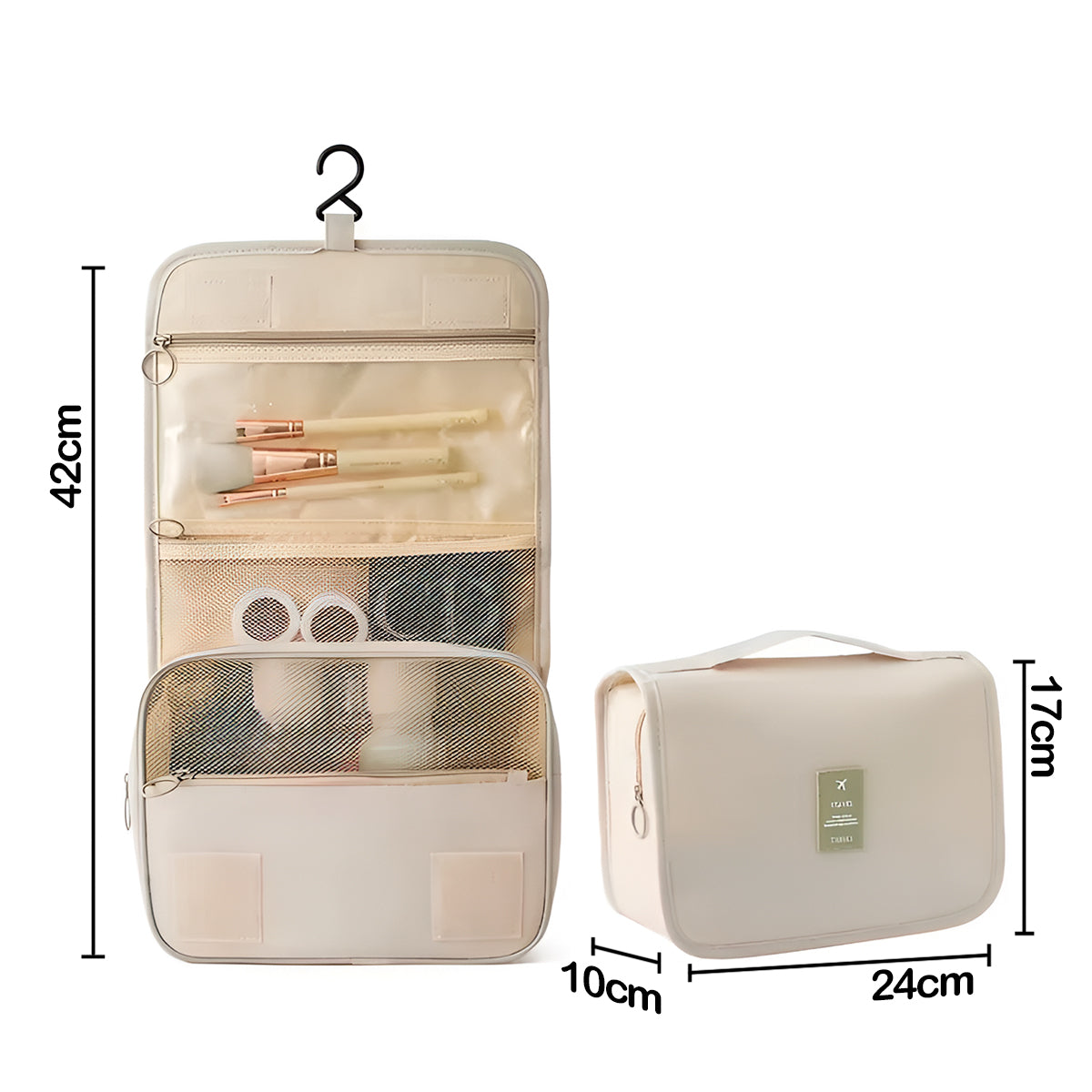 - Gran capacidad de almacenamiento: Suficiente para cosméticos, maquillaje y artículos personales.