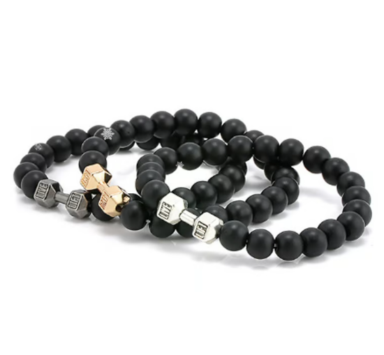 - Material: Piedra de lava volcánica, ónix negro, aleación de mancuernas.