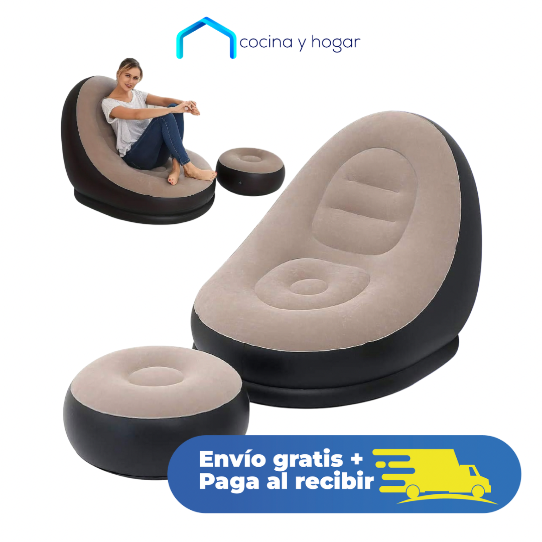 Funcionalidad: Sofá inflable multifuncional, incluye reposa pies inflable.