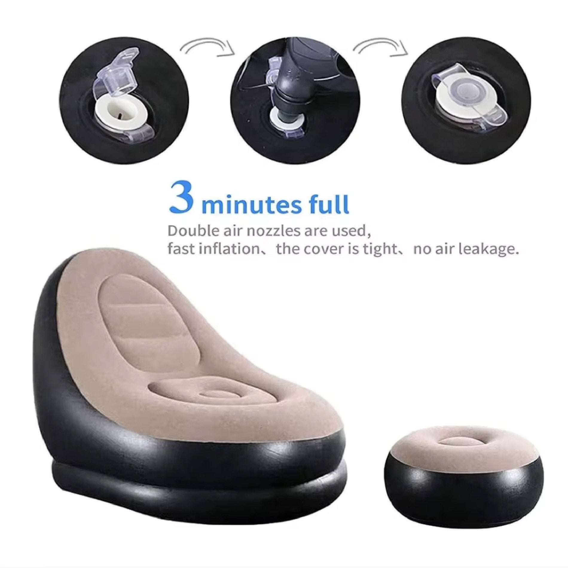 El inflado del Sofá Inflable RelaxPro es muy rápido. Con el inflador manual incluido, puedes inflarlo completamente en solo unos minutos, ¡listo para usar en poco tiempo!