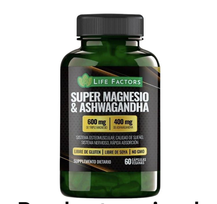 La ashwagandha actúa sobre tus niveles de cortisol, reduciendo el estrés, mientras el magnesio mejora la función celular para producir energía real, no estimulante.